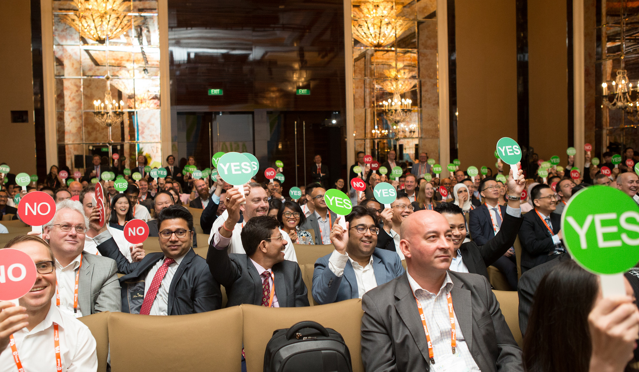 Attendees cast their vote in the Great Debate on whether cryptocurrencies will replace traditional currencies.