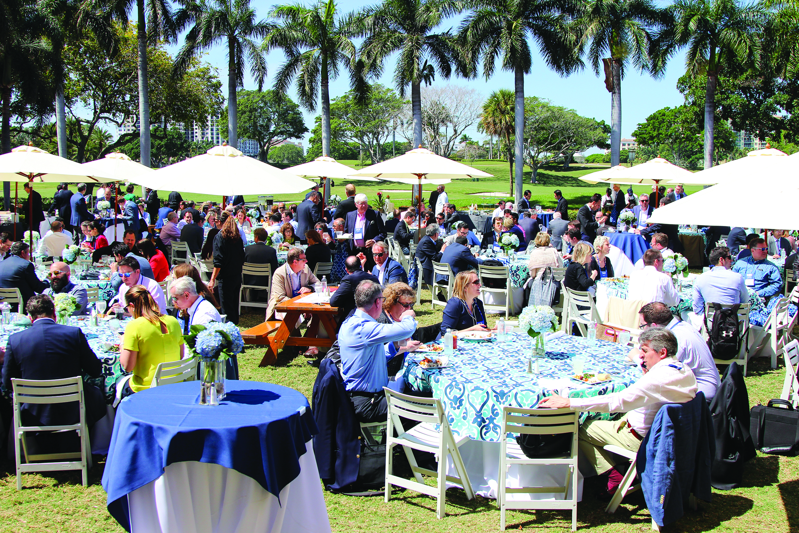 Attendees enjoy the Florida sunshine at the international exchange networking lunch sponsored by BME Clearing, Nasdaq, Taifex and TMX.