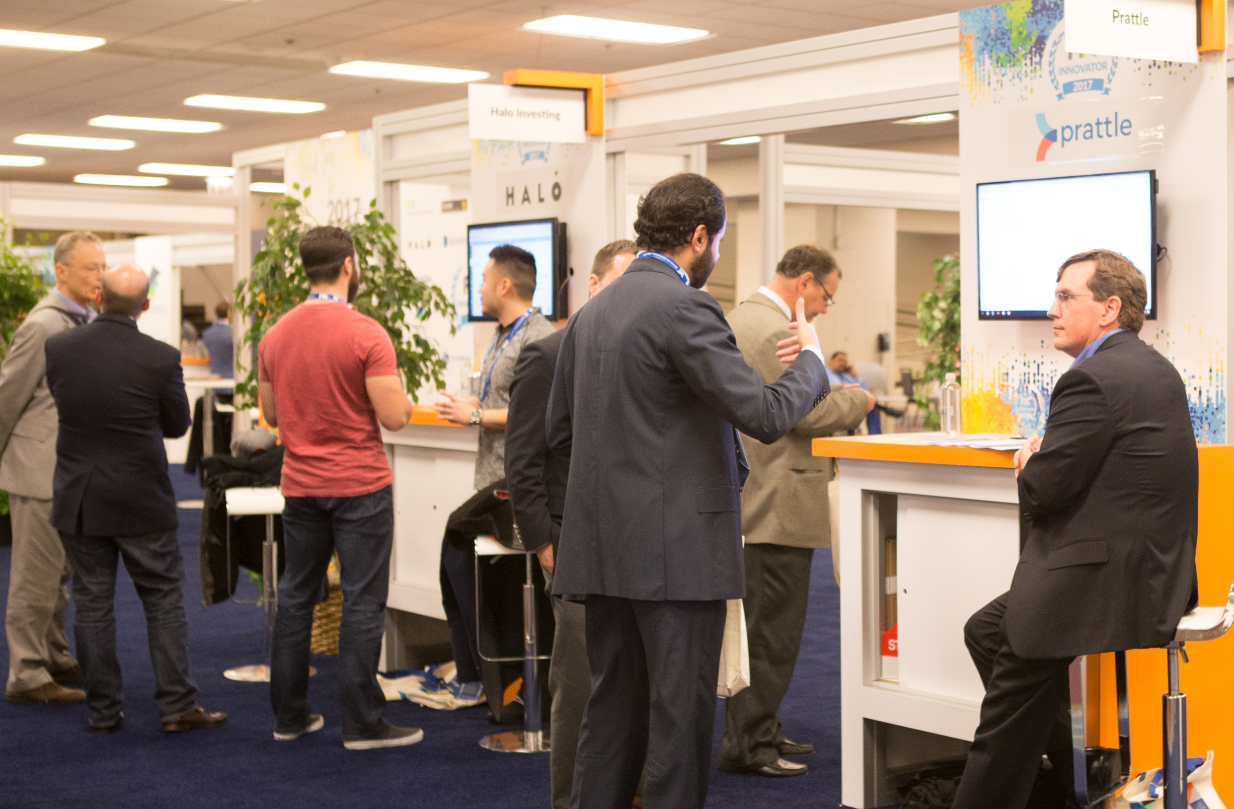 Expo attendees visit fintech startups in the Innovators Pavilion.