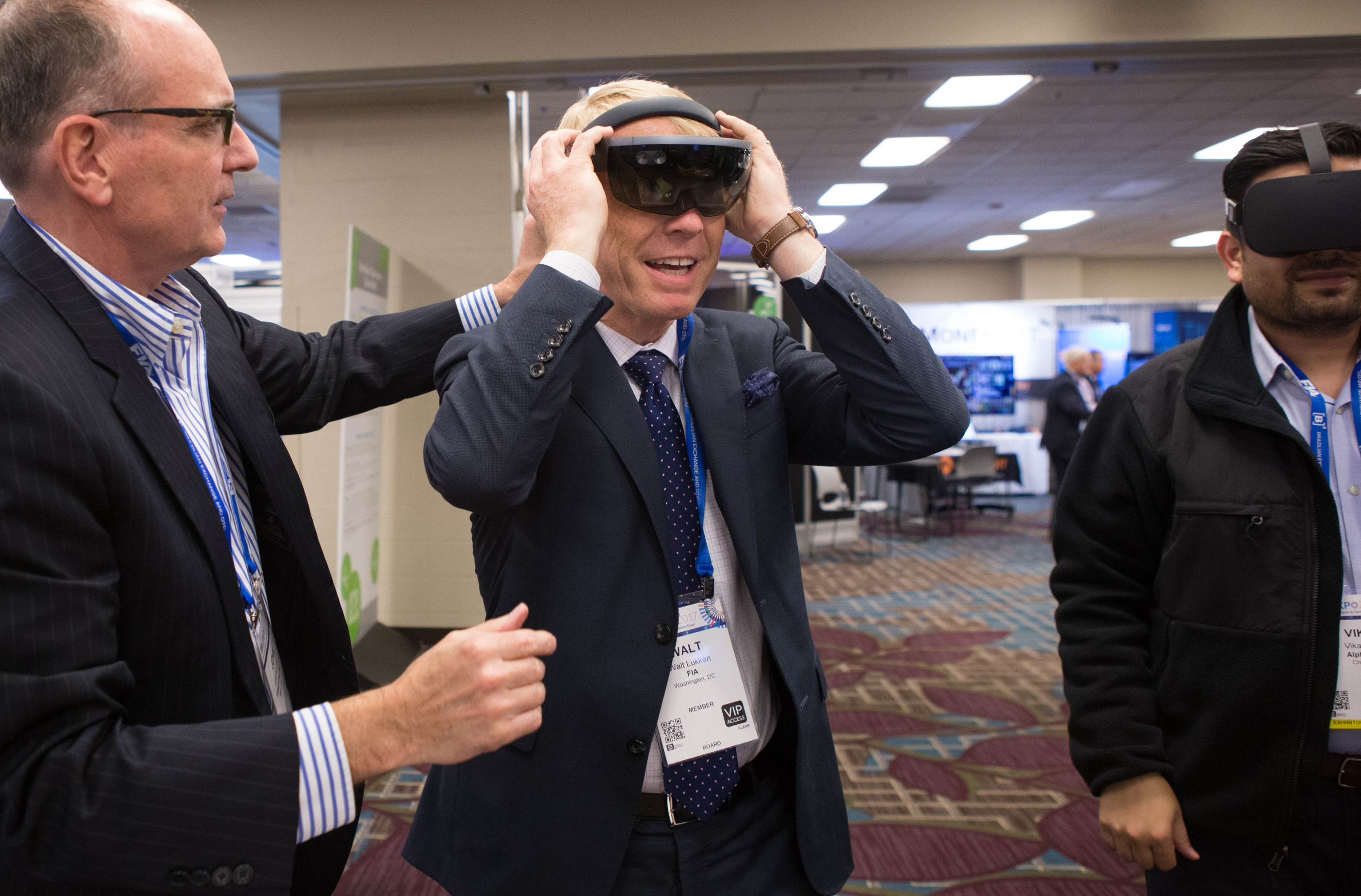Visualizing market data through augmented reality headsets in the Innovators Pavilion.