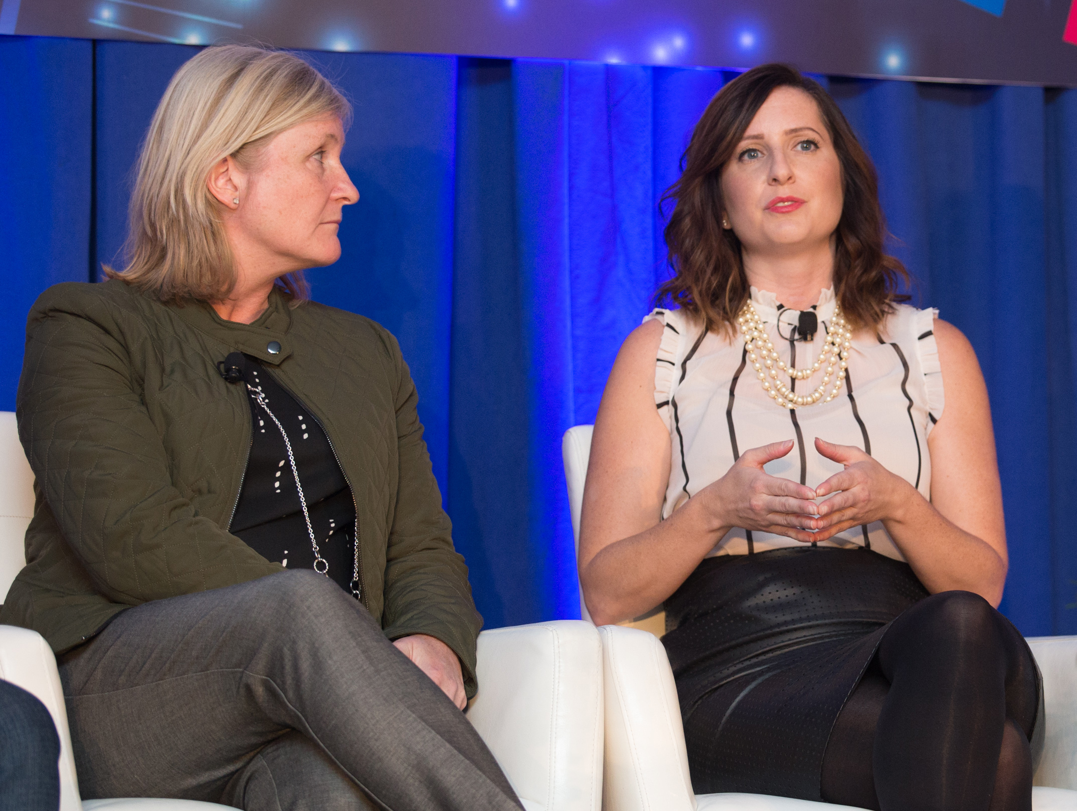 Jennifer O'Rourke from the State of Illinois discusses the adoption of blockchain as Jean Donnelly of Fintech Sandbox listens.