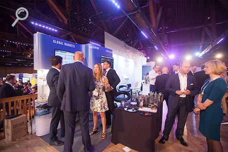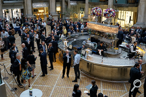 Attendees gather at the opening reception at the Royal Exchange, sponsored by CME Group.