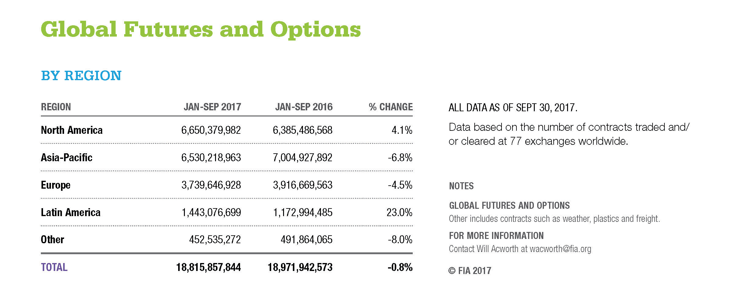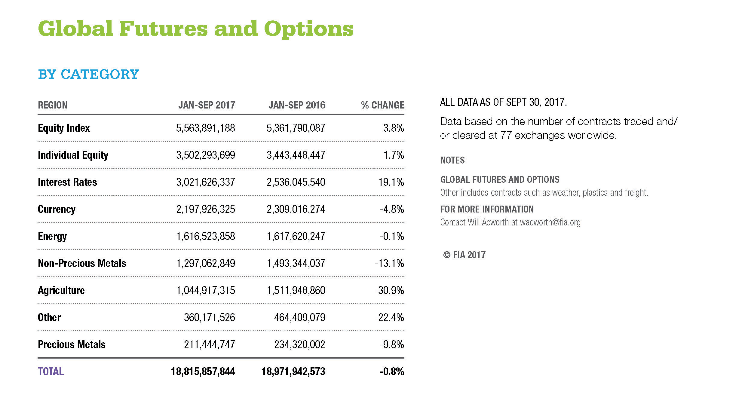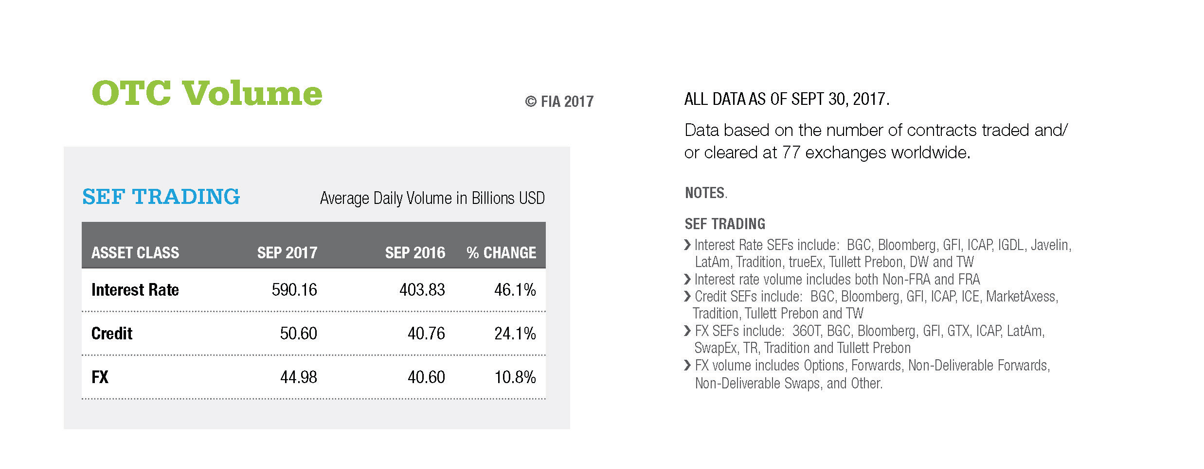 ALL DATA AS OF SEPT 30, 2017. Data based on the number of contracts traded and/or cleared at 77 exchanges worldwide.