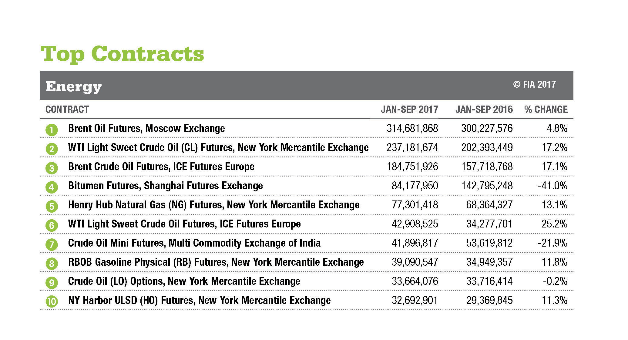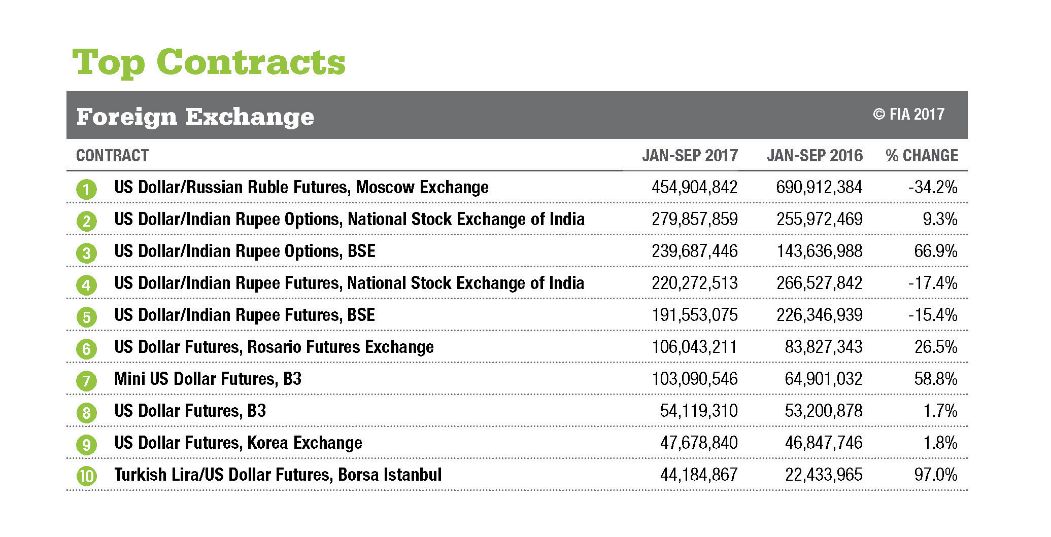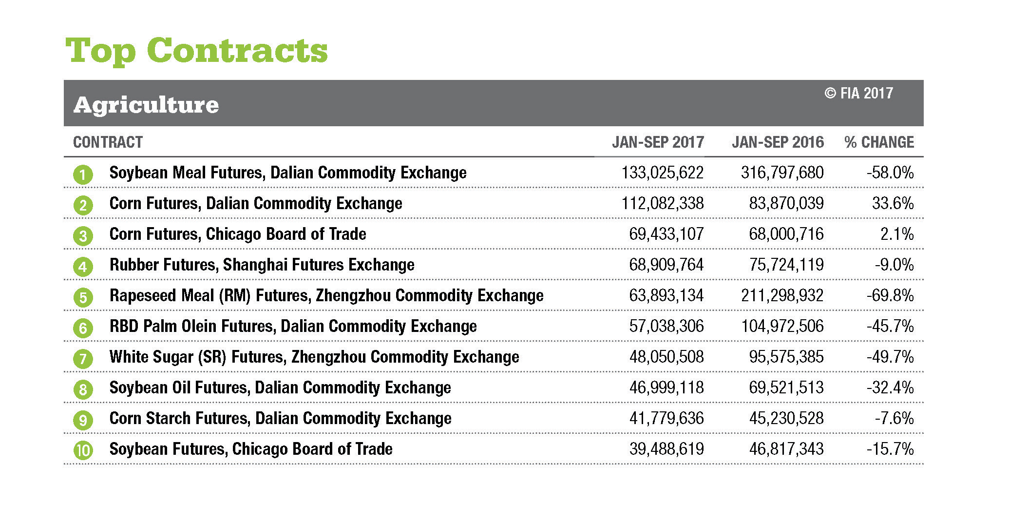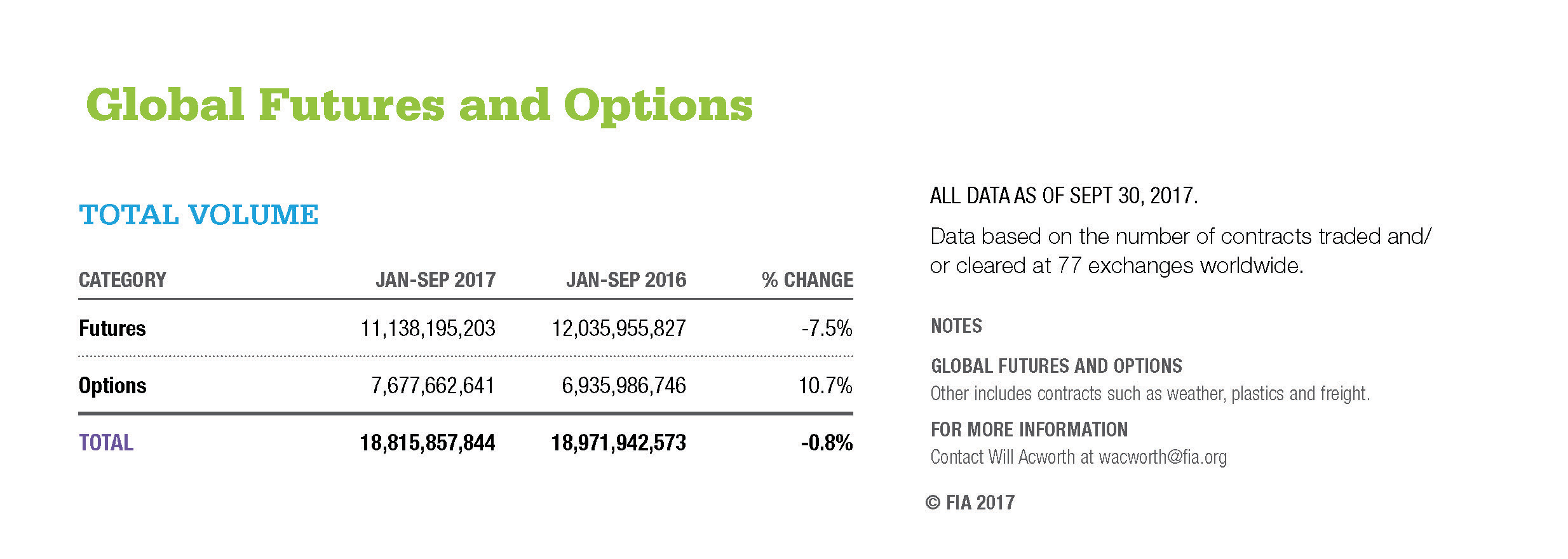 ALL DATA AS OF SEPT 30, 2017. Data based on the number of contracts traded and/or cleared at 77 exchanges worldwide.